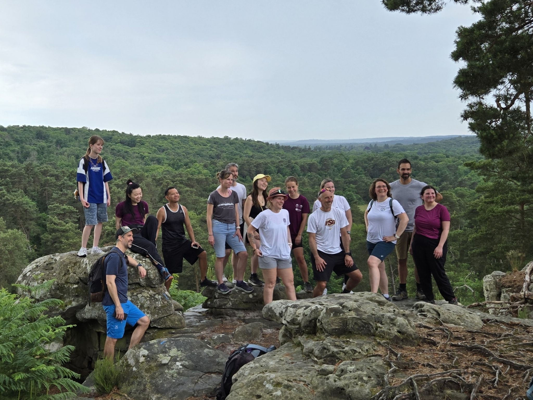 Image de deux collaborateurs CEGC sur le mur d’escalade de Fontainebleau.